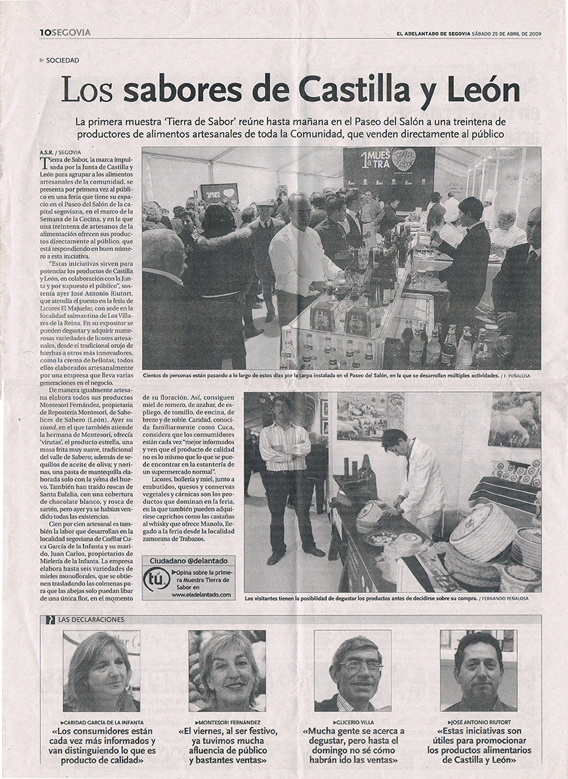 I Feria Tierra de Sabor La primera muestra «Tierra de Sabor» reúne a una treintena de productores en Segovia. El Adelantado de Segovia – A.S.R. – 25 – Abril – 2009 Los sabores de Castilla y León